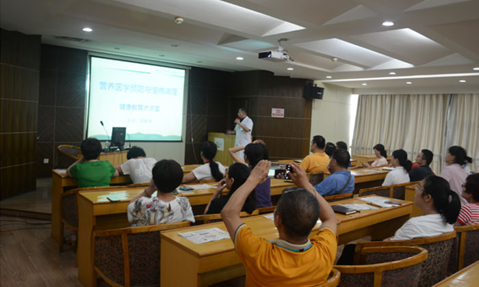 在講座過程中,教授針對大家關注的常見高血壓、高血脂、高血糖、高尿酸“四高”問題,分析了引發健康危機的原因是營養不平衡,從而導致的各種病癥的出現,介紹了營養醫學就是給患者全面提供機體缺失的營養,使患者具備自身修復受損機體能力的前沿醫學,提出了如何應對慢病的困擾和預防措施方案。