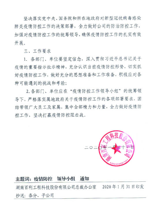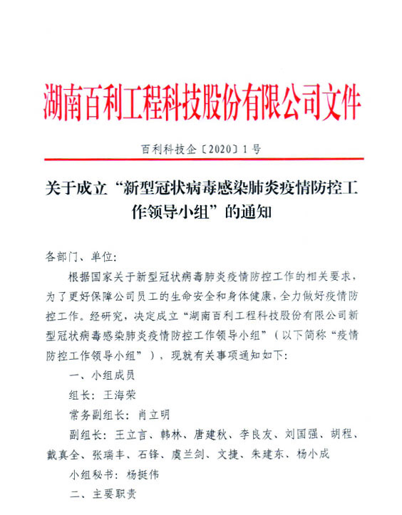 關于成立"新型冠狀病毒感染肺炎疫情防控工作領導小組"的通知